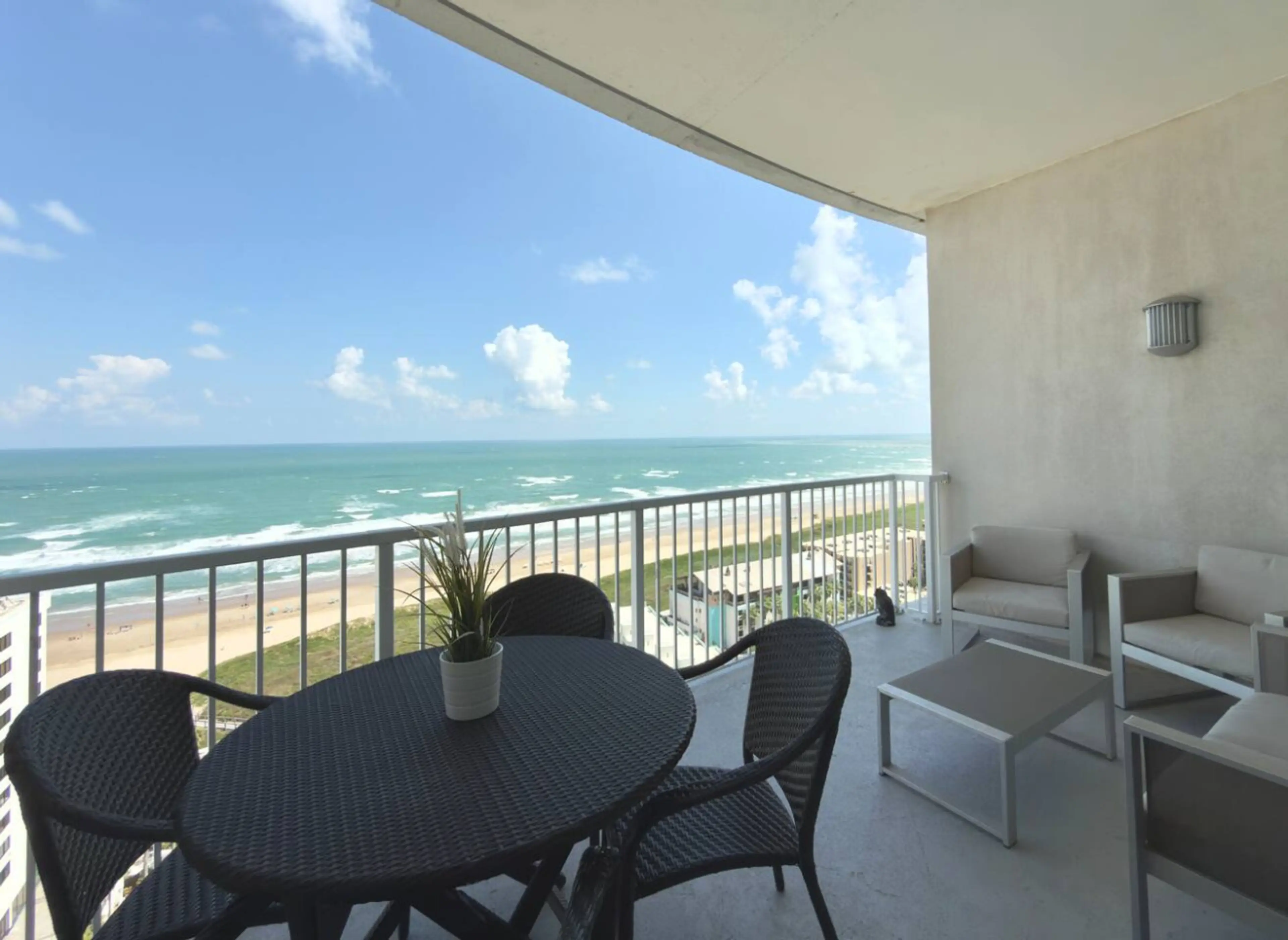 Perched on the 18th floor, this spacious 3-bedroom beachfront condo offers breathtaking panoramic views of both the sparkling Gulf waters and the peaceful Laguna Madre Bay. Whether you’re relaxing on the balcony with your morning coffee or watching the sunset paint the sky, every moment here feels l...